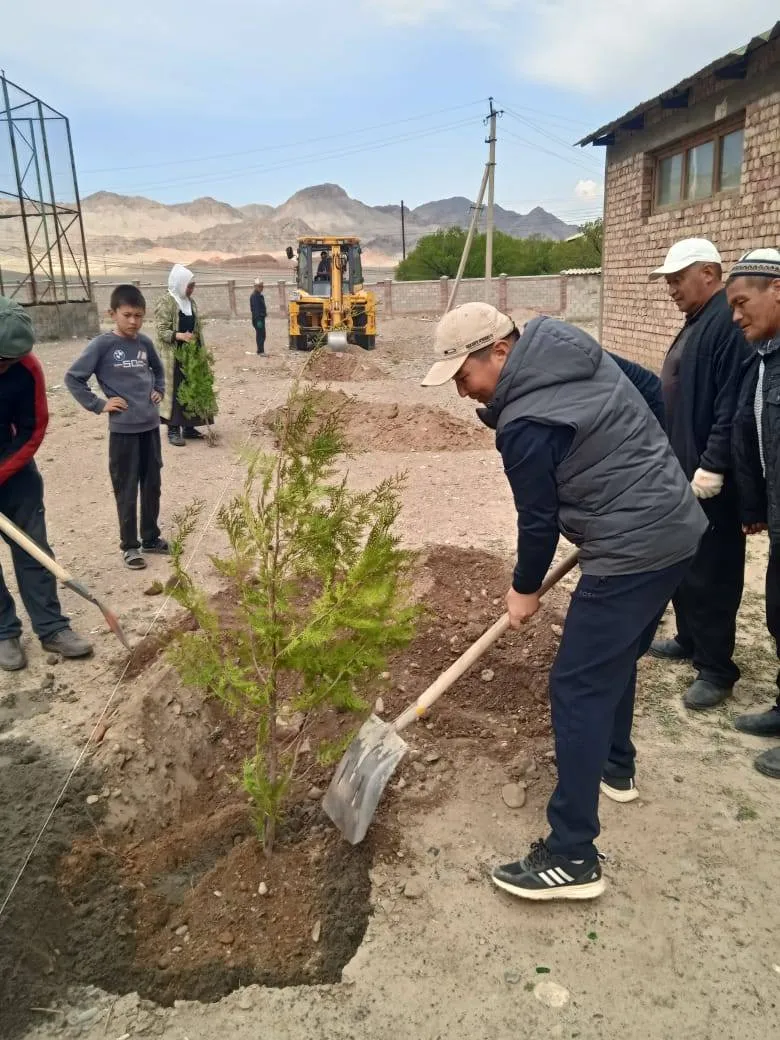 Баткен районунун акими Данир Иманалиев тарабынан айлана-чөйрөнү көрктөндүрүү 2026-жылдын 11-апрелинде Самаркандек айыл өкмөтүндө “Жашыл Мурас” улуттук өнөктүгүнүн алкагында 200 түп арча көчөтү отургузулду.