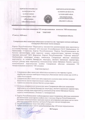 Урматтуу Самаркандек айыл өкмөтүнүн тургундары!Кыргыз Республикасынын Президенти Садыр Жапаровдун протоколдук тапшырмасына ылайык, Самаркандек айыл өкмөтүнүн аймагында өткөрүлүүчү бардык маданий жана салтанаттуу иш-чаралар кечки саат 22:00дө токтотулат.Ба...